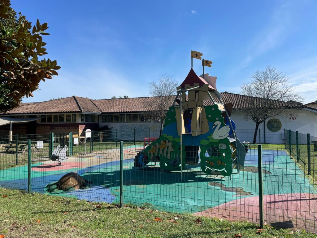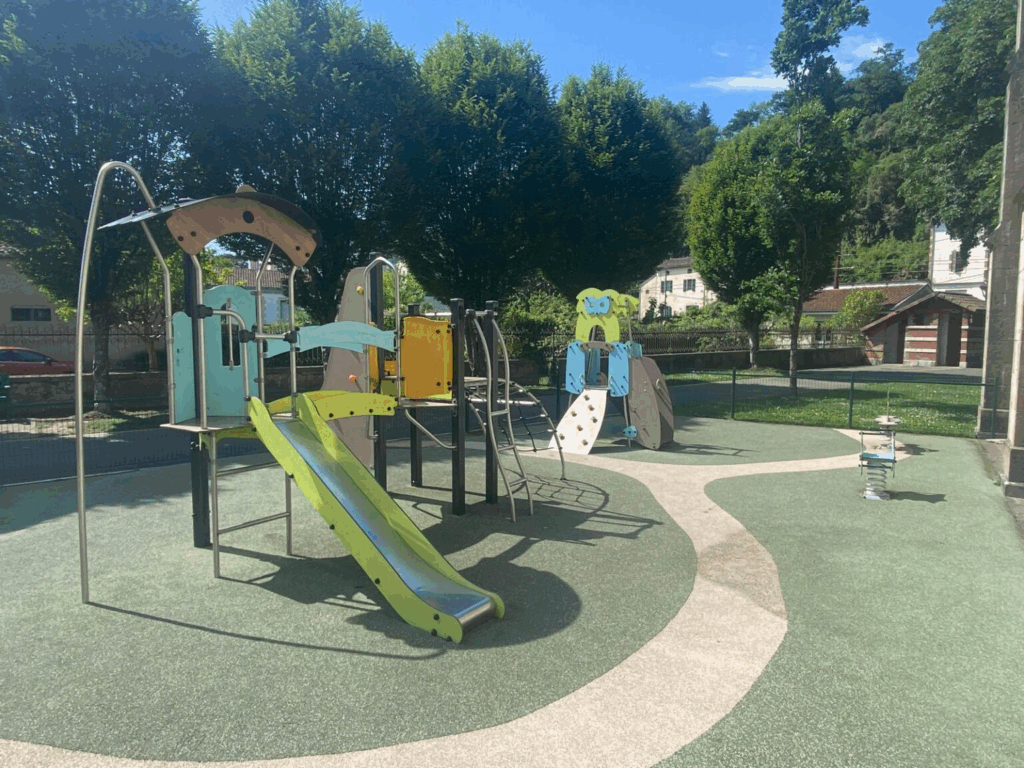 • aire de jeux entièrement clôturée avec accès par tourniquet → vigilance car les enfants peuvent vite sortir,