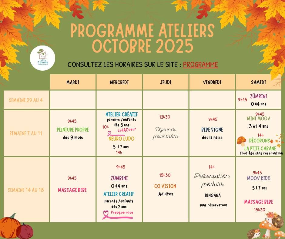 Retrouvez le programme du mois sur le site Internet de la Ptite Cabane
